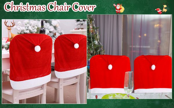 Rdeči klobuk stoli nazaj pokrovi so kot nalašč za uporabo v božični sezoni, dobre notranje dekoracije za dom, pisarno in učilnico, bo pustil svoje prijatelje, družino čudovit božični vtis.