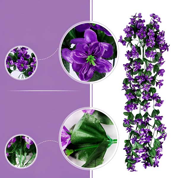 Z našimi realističnimi umetnimi visečimi cvetovi vnesite pridih elegance v vsak prostor. Te viseče rože, izdelane iz izvrstne tkanine, podobne svili, in visokokakovostne plastike, vaši okolici dodajo naravni čar.