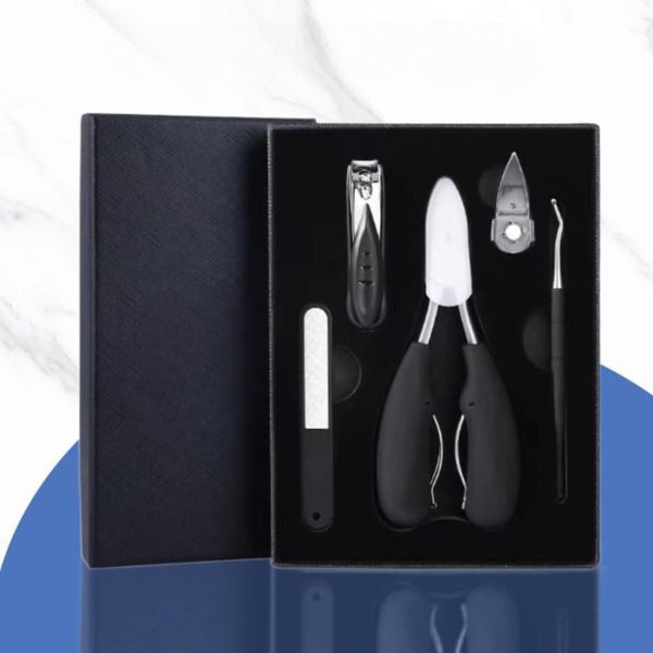 Posebej zasnovano za zadebeljene in vraščene nohte, orodja v tem setu zagotavljajo moč in natančnost, potrebno za zahtevno nego nohtov brez nelagodja ali tveganja poškodb.