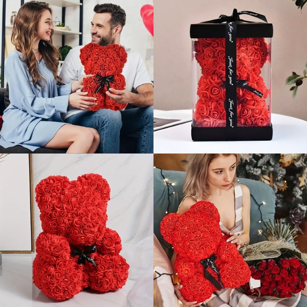 Ta medvedek je posebno, ročno izdelano darilo, ki združuje mehko eleganco vrtnic in čar medvedka. Ko podarite to edinstveno stvaritev, bo zagotovo pustila nepozaben vtis, kar bo izjemno presenečenje.