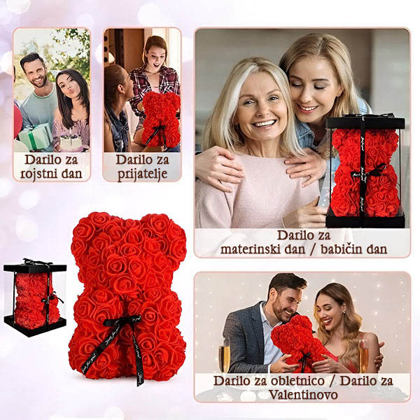🎁 Presenetite jo z romantičnim medvedkom iz večnih vrtnic.