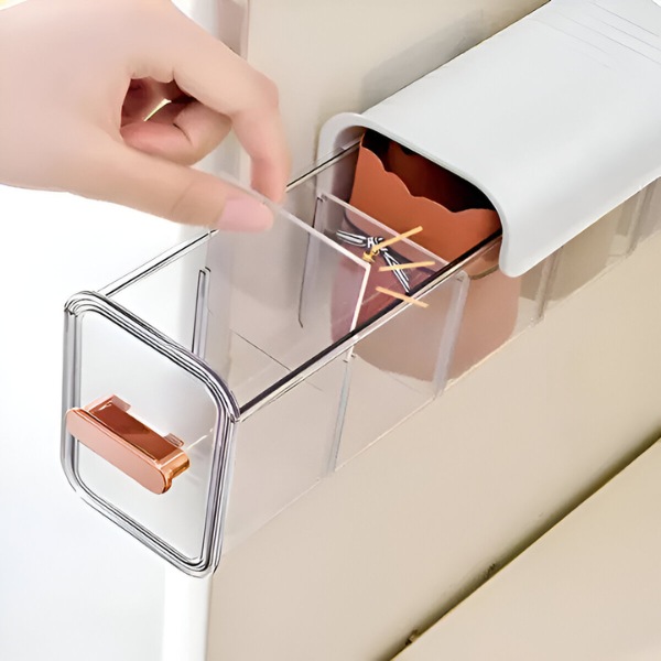 Shranite začimbe, pripomočke ali drobno orodje v te prozorne organizatorje z varnimi pokrovi, ki vaše kuhinjske predmete ohranjajo brez prahu. Namestite jih v omare ali na stene za priročen dostop, da bo priprava obrokov hitrejša in učinkovitejša.
