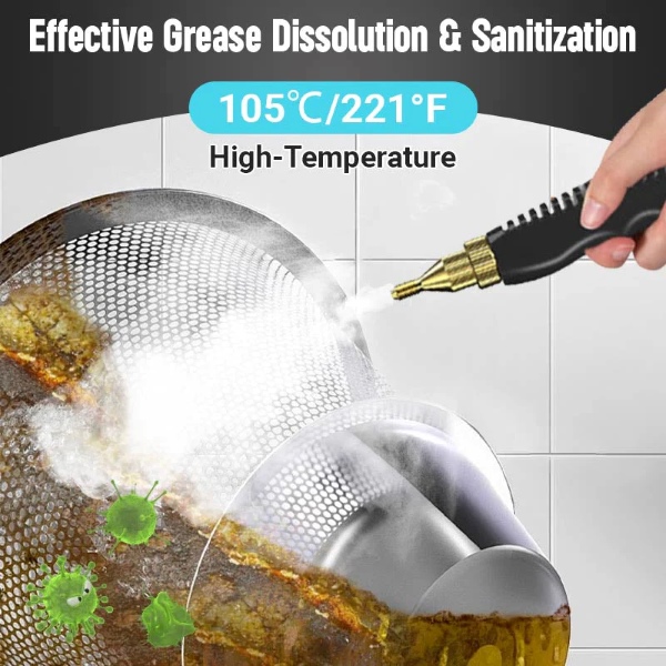 Idealno za čiščenje kuhinjskih nap, loncev, hladilnikov, klimatskih naprav, avtomobilov, kopalnic, kuhinj in več z 3BAR visokim parnim tlakom.