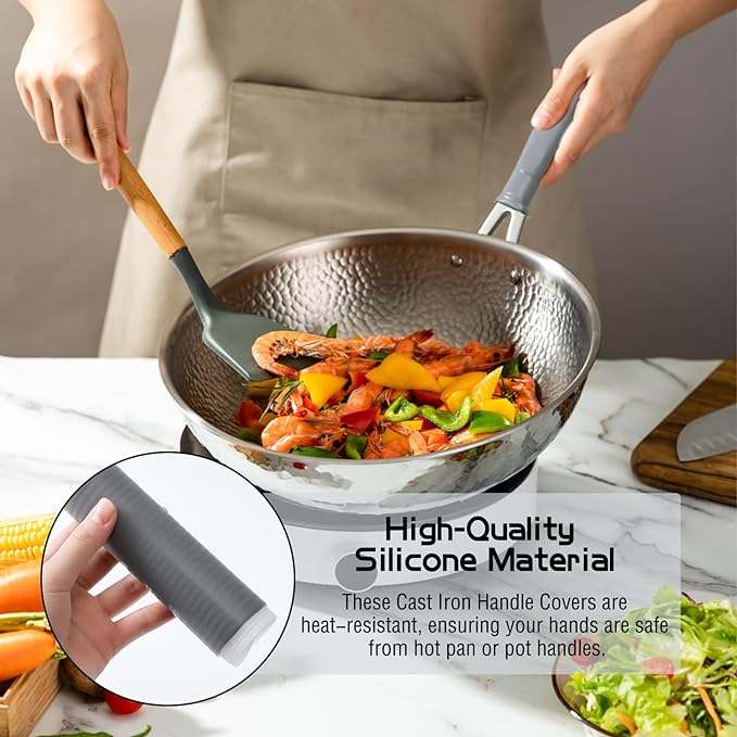 Naše silikonske prevleke so zasnovane tako, da so združljive s številnimi velikostmi ročajev loncev in ponev, zato so vsestranski in prilagodljivi kuhinjski dodatel, ki je kot nalašč za litoželezne posode in ponve z ravnim dnom.