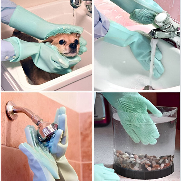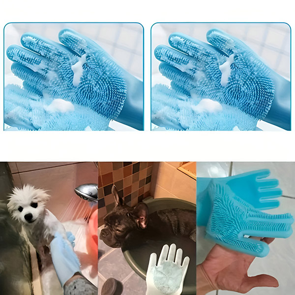 Uporabite obe roki, da prihranite čas in dosežete področja, ki jih je težko očistiti, kot so obraz, noge in rep. Rokavice so narejene iz toplotno odpornega silikona, zato so mehke, prožne in popolne za temeljito nego.