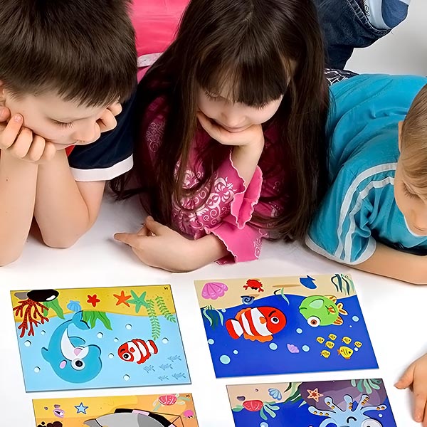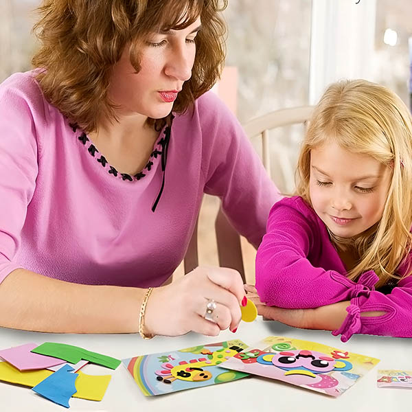 STICKYFUN vključuje izrazite plasti in bogate barve, ki jih je treba lepiti plast za plastjo. Igre z nalepkami lahko izboljšajo otrokovo sposobnost prepoznavanja barv, trenirajo slikovno razmišljanje ter izboljšajo telesno koordinacijo in sposobnost reševanja problemov.
