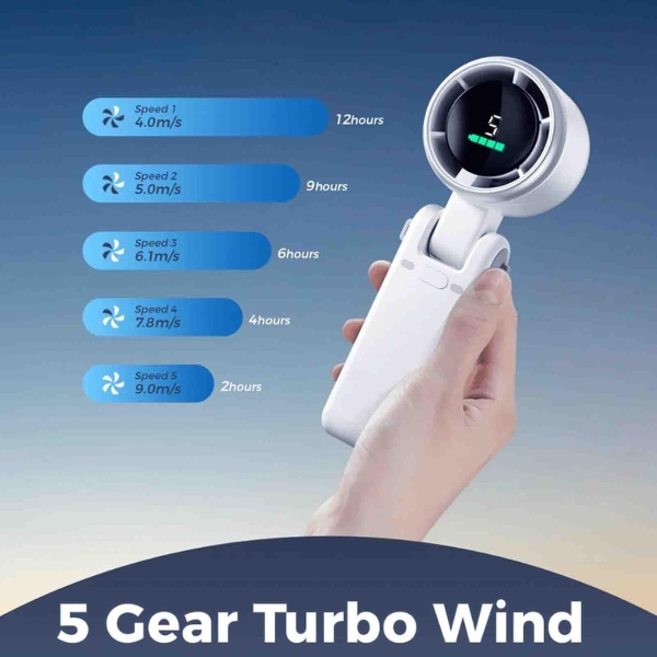 Z 1800mAh polnilno baterijo in močnim pretokom zraka ta turbo ventilator prekaša osnovne modele.