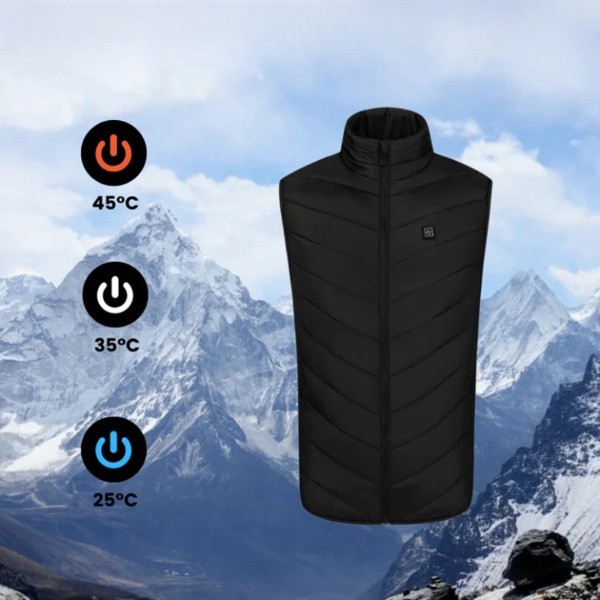 Ostanite topli s FLAMEVESTOM, vašim najboljšim spremljevalcem v hladnem vremenu. Ta brezrokavnik s tremi grelnimi elementi in grelcem za vrat vam bo zagotavljal udobje tudi pri najhladnejših temperaturah.