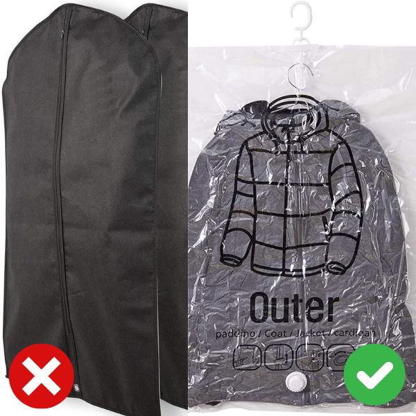 Izognite se težavam z odpiranjem vrečk, da bi našli svoja oblačila. Jasna in pregledna zasnova VACUHANG olajša vpogled v notranjosti, ne da bi jih odpirali. Ta funkcija v kombinaciji s kavlji za obešalnike omogoča hiter in udoben dostop do shranjenih stvari.